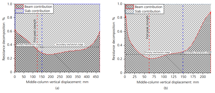 圖2 梁和樓板的抗力貢獻(xiàn)分解圖
