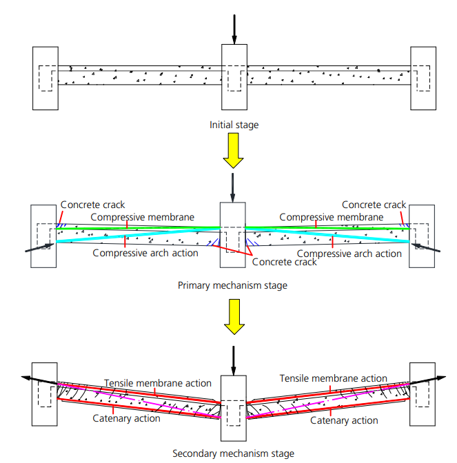 圖3 梁和樓板在2階段的倒塌機(jī)制